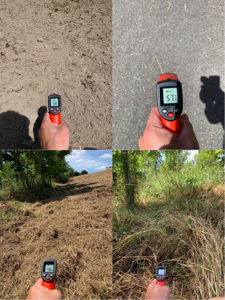 Un sol laissé à nu impacte directement la température ressentie, mais aussi le climat. Ce choix délibéré de gestion culturale interroge alors que, comme notre dernier article l’explique, “le sol peut jouer le rôle de climatiseur ou de radiateur, selon l’humidité disponible et les conditions atmosphériques”.